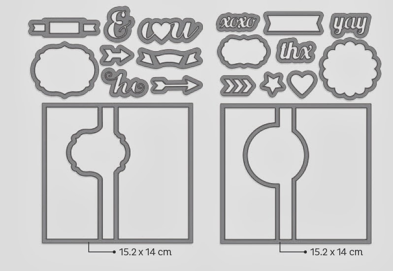 Diese neuen Kartenstanzformen enthalten zusätzliche Elemente mit vielseitigen Motiven und eignen sich so neben Flip-Karten auch für andere Projekte.