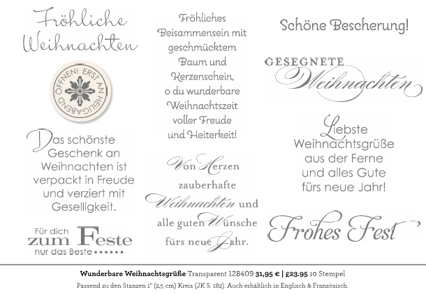 Die letzte Chance auf traumhafte Weihnachtsstempel, die aus dem letzten Weihnachtskatalog übernommen wurden. Hier müsst ihr schnell sein, denn diese Stempel sind nur mehr solange der Vorrat reicht, jedoch maximal bis zum 27. August 2014 bestellbar.