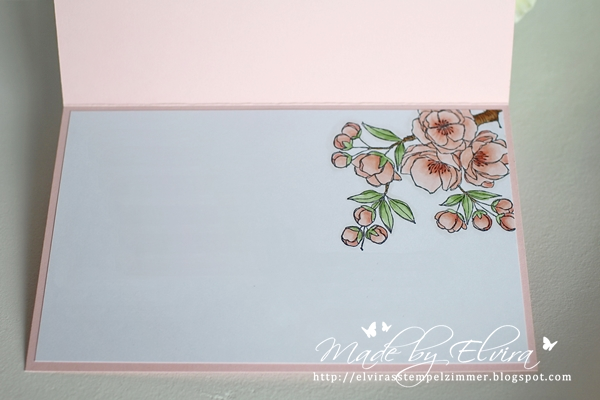 Den Blütenzweig habe ich auch auf der Innenseite der Karte abgestempelt und coloriert