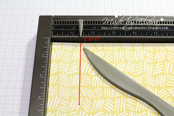 Mit dem Simply Scored Falzbrett (oder auch mit der Falzklinge vom Papierschneider) bei 1 3/8″ (oder 3,5 cm) eine Falzlinie ziehen